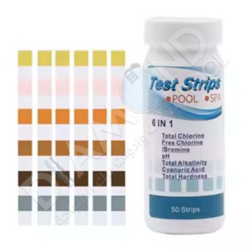 شرائط اختبار كيميائية عالية الدقة لحمام السباحة والمنتجع الصحي الخاص بك. اختبارات 7 معايير: الكلور الكلي ، والكلور الحر ، والبروم ، ودرجة الحموضة ، والقلوية الكلية ، وحمض السيانوريك (المثبت) ، والصلابة الكلية