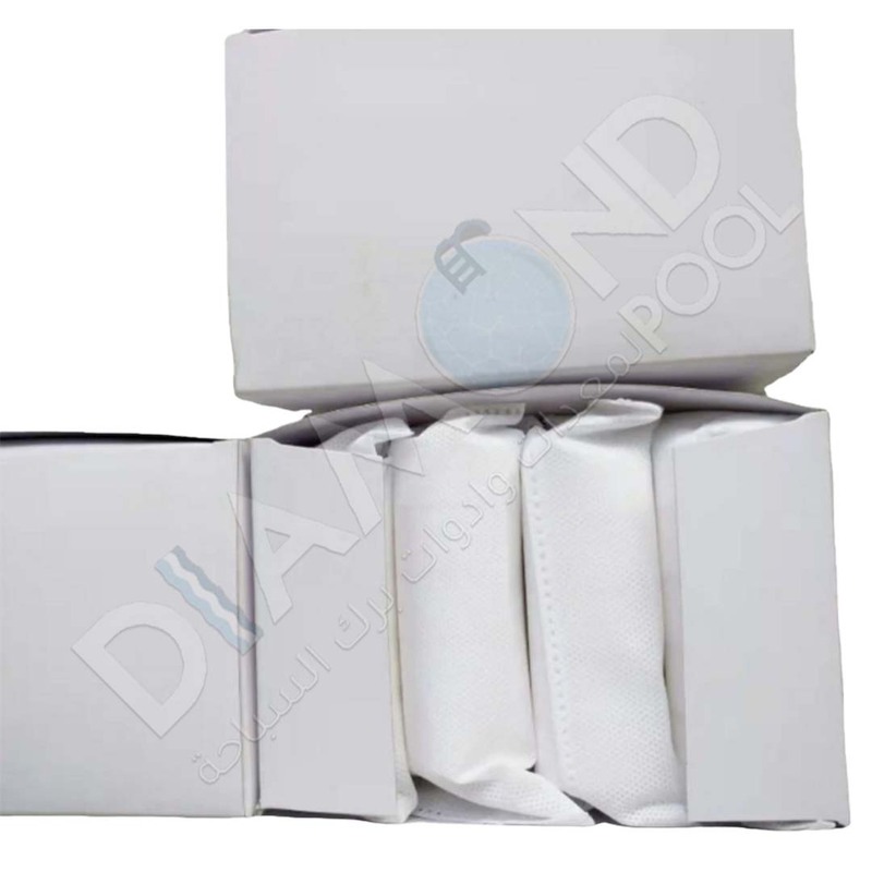 كل علبة تزن 1 كيلو وتحتوي على 8 بكتات وكل بكيت يحتوي على 5 اقراص ووزن القرص الواحد 25 غم يتم استخدام هذه المادة لتصفية و تنقية مياه أحواض السباحة من الشوائب و العوالق ، يوضع من 10.5 غم لكل كوب ماء . لا يجوز استخدام هذه المادة لأي استخدام غير ما تم توضيحه إلا بإشراف خبير مختص و أيضا لا يجوز خلط هذه المادة مع أي من مواد التعقيم الأخرى.