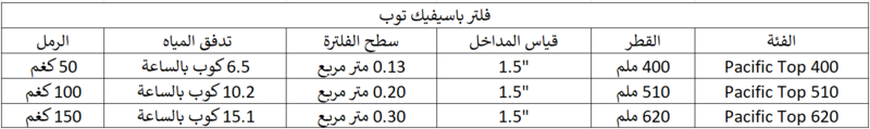 المواصفات: فلتر مصمم لحمامات السباحة الخاصة، بجودة عالية وفق المعايير الصناعية. يتميز بخزان مصنوع من الألياف الزجاجية المعززة (الفايبر جلاس) لمتانة إضافية، ومعالج لمقاومة الأشعة فوق البنفسجية. يحتوي على مقياس ضغط ومحبس سداسي علوي بقياس 1.5 انش. متوفر بأقطار: 400 مم، 510 مم، و620 مم. نظام تصريف لتسهيل تفريغ الماء والرمل. نظام تنفيس داخلي لمنع تكوّن فقاعات الهواء داخل الفلتر.