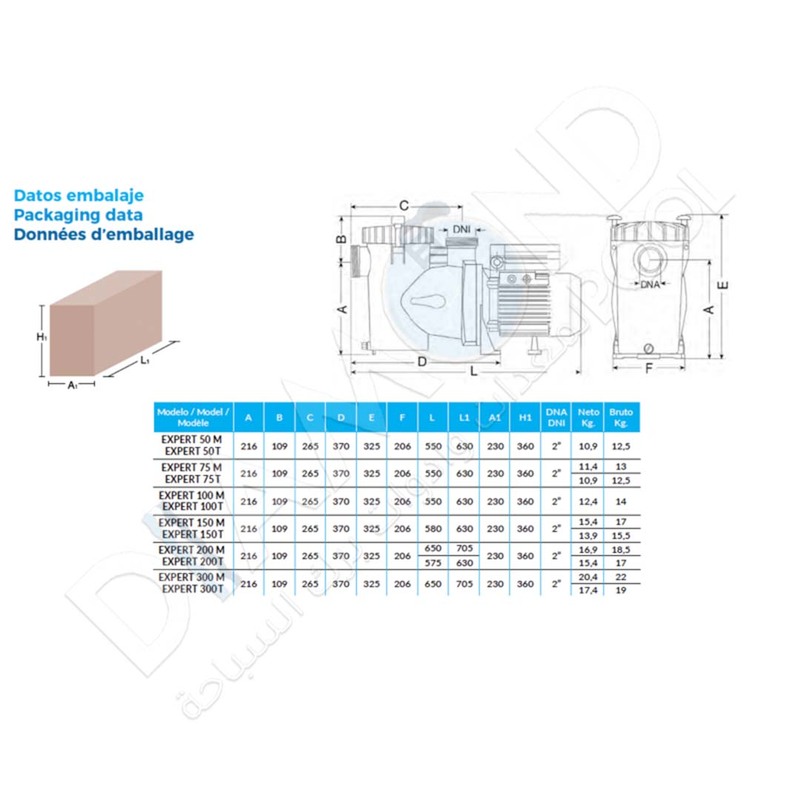 هذه مضخة كهربائية ذاتية الاستنزاف مصممة للاستخدام في حمامات السباحة، وتتميز بفلتر كبير مسبق. يأتي الفلتر مع غطاء شفاف من البولي كربونات ومسامير فراشة، بينما تم صنع صندوق المضخة والغطاء والموجه والعداد والغطاء من البولي بروبيلين، وهو مادة مقاومة للمواد الكيميائية ومعززة بألياف الزجاج. كما تأتي المضخة مع مجموعة تجهيزات للتحليق. تتكون العمود من الفولاذ المقاوم للصدأ AISI-316، والدفعة مصنوعة من Noryl. تم صنع الختم الميكانيكي من الفولاذ المقاوم للصدأ AISI-316، مما يجعله مناسبًا للاستخدام مع المياه البحرية. تم صنع البراغي من الفولاذ المقاوم للصدأ AISI 304.